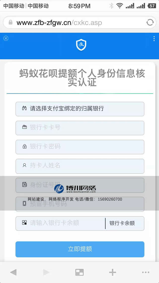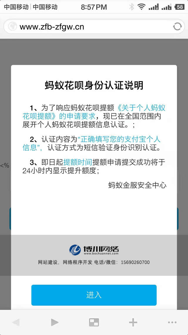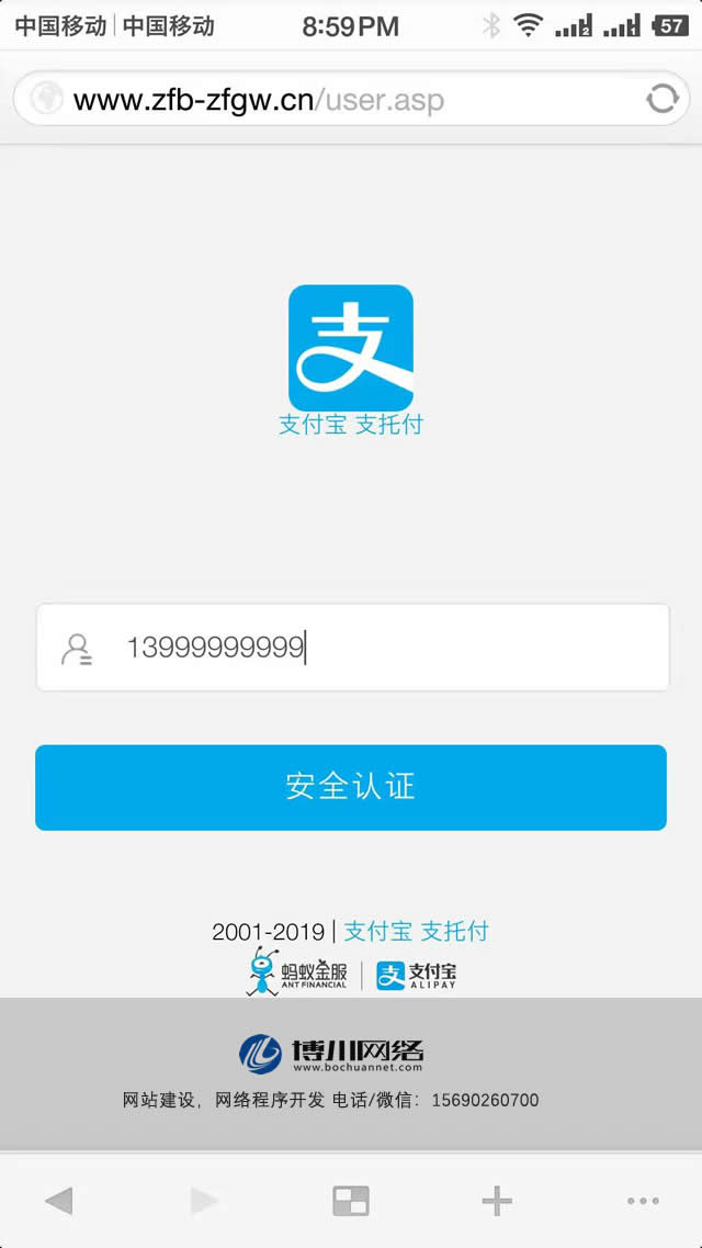 以上幾點已經完全認定這是一個釣魚網站無疑了。至于一開始短信發信人顯示為支付寶官方號碼,博川的觀點是偽基站導致,因為專業所限,不做深入討論。